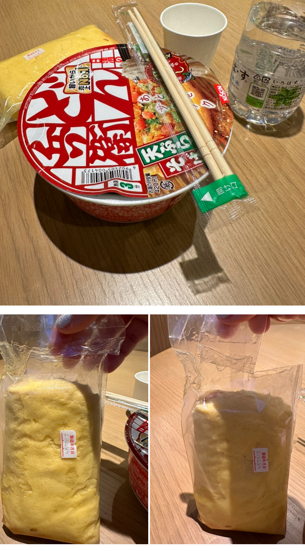 컵라면이랑 전자렌지에 돌린 계란말이 껍질 가위로 싹뚝 잘라 3분의 2정도 먹었어요.