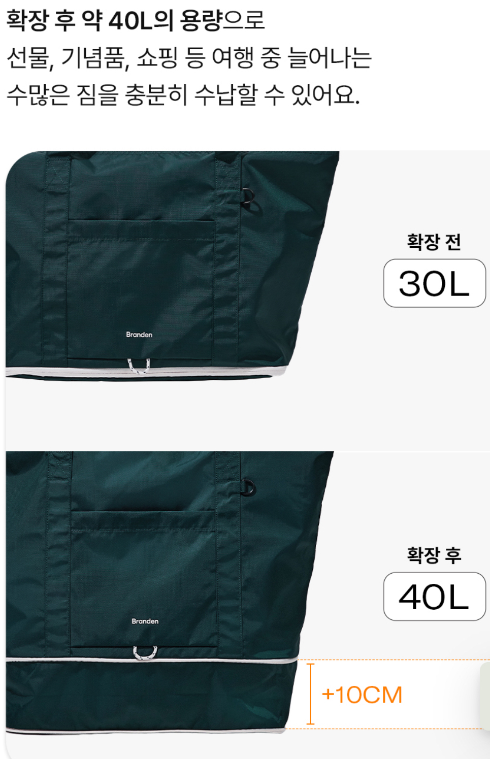 하지만 제 브랜든 가방은 자그마치 10cm나 확장할 수 있다는 아주 큰 장점이 있죠!